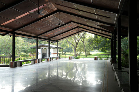 The Pavilion is our elegant semi-open hall that blends rustic charm with refined design. Spanning 4,000 square feet, it features a pitched roof, earthy interiors crafted from exposed brick, granite, and bamboo, and unobstructed 360° views of the surrounding orchard. Whether you’re hosting a formal gathering, a cultural performance, or a family get-together, The Pavilion’s versatility and natural openness make it the perfect canvas for your event. Its seamless connection to nature ensures every moment feels fresh, expansive, and unforgettable.
